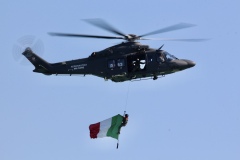 Alle 15.30 finalmente lo speaker inizia a spiegare lo svolgimento della manifestazione ed è così che arriva sulla scena l’HH139 dell’Aeronautica con il solito passaggio davanti al pubblico con appeso fuori dal portellone il nostro tricolore che dà il via come sempre alle danze.