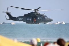 Dalle nostre spalle prende la scena del mare l’AgustaWestland AW129 Esercito Italiano (mangusta) un elicottero d’attacco leggero e molto aggressivo che mostra tutte le sue qualità di manovrabilità davanti ai nostri occhi; tocca poi alla demo SAR search and rescue operata dall’HH139 sempre dell’aeronautica militare.